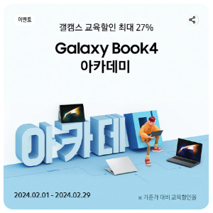 - 갤럭시북 4 : 최대 27% 교육 할인 + 최대 25만 원 중고 노트북 보상