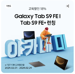 - 갤럭시탭 S9 : 최대 18% 교육 할인 + 삼성카드 7% 할인