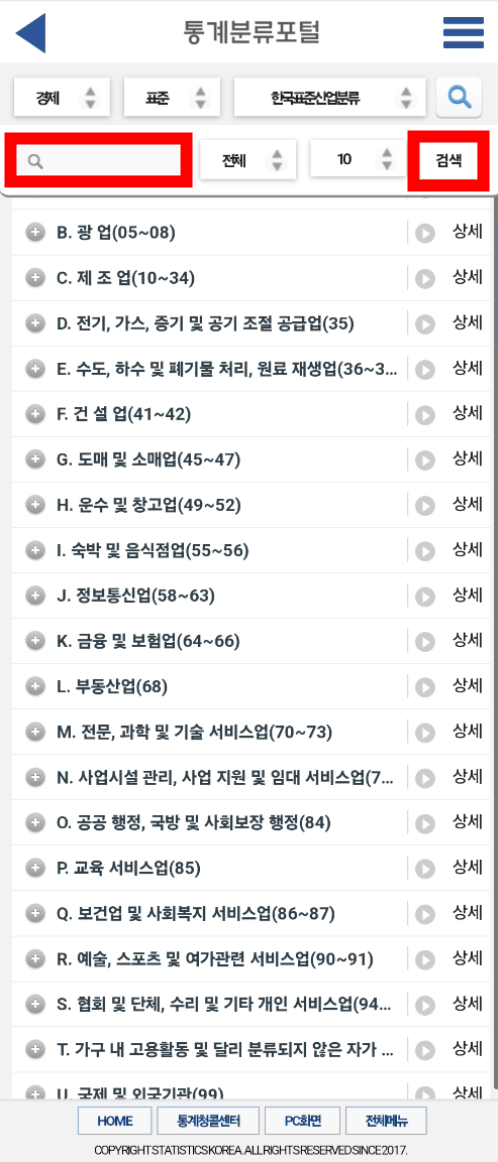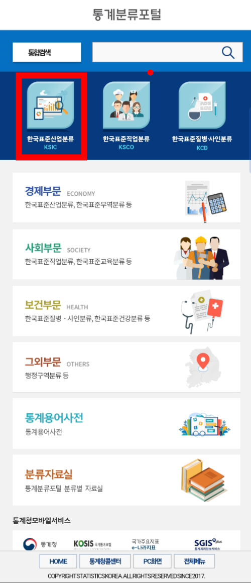 - 통계청의 통계분류포털(https://kssc.kostat.go.kr:8443)에 접속